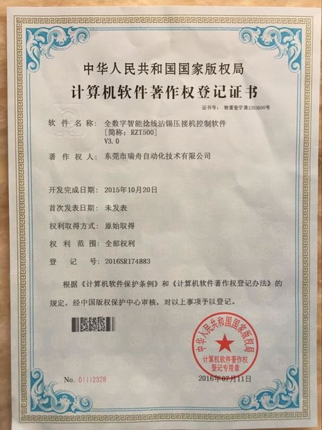 Standard:Copyright Of Computer Software (Control System) Number:2016SR174883 Issue Date:2016-07-11 Issued By:National copyright administration of the People's Republic of China |
